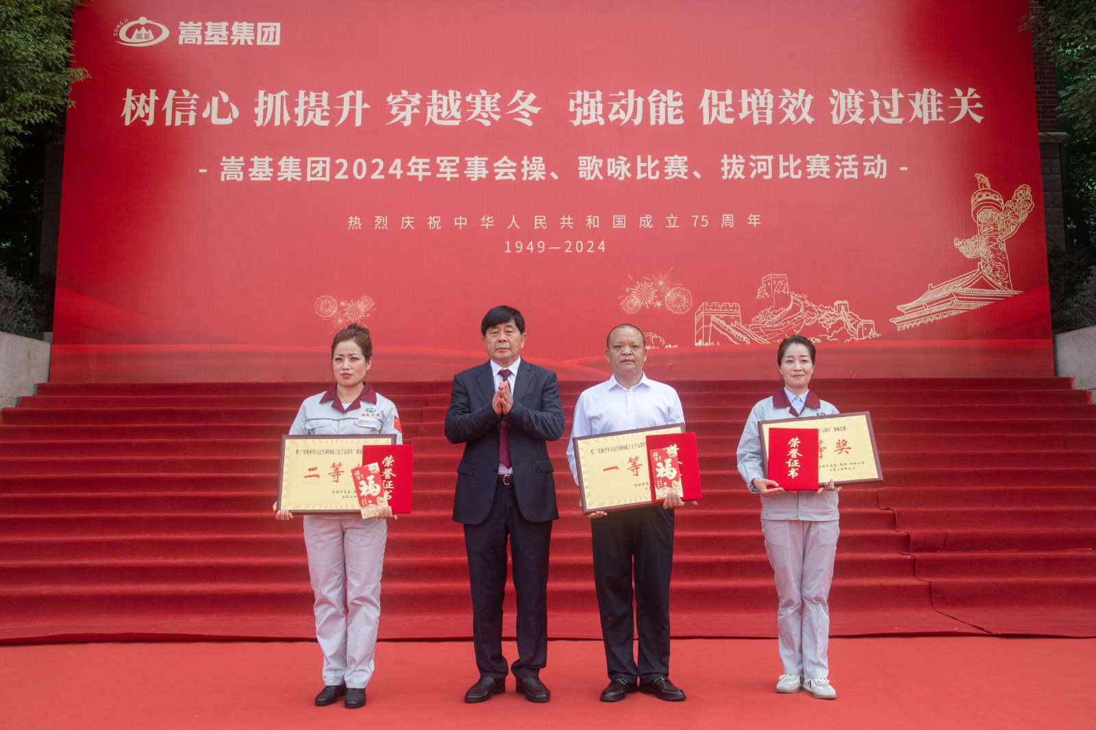 活動(dòng)正式開始前,集團(tuán)公司董事長(zhǎng)屈松記發(fā)表致辭。他講到,2024年世界經(jīng)濟(jì)復(fù)雜性、不確定性上升,國(guó)內(nèi)周期性、結(jié)構(gòu)性矛盾突出,各種因素困擾著企業(yè)的生存與發(fā)展。集團(tuán)公司高管團(tuán)隊(duì)審時(shí)度勢(shì),研判經(jīng)濟(jì)發(fā)展動(dòng)態(tài),及時(shí)做出戰(zhàn)略性判斷和戰(zhàn)術(shù)調(diào)整,集團(tuán)上下同欲,全面貫徹落實(shí)“一挖、兩抓、三提、四降、五減、六保”措施方案,全面推進(jìn)“三穩(wěn)四保”工作,全面推行“鎖定利潤(rùn),倒推成本”的嵩基版AMB管理模式,全面抓好精益管理、持續(xù)改善,深入開展效能提升年活動(dòng),取得了一定的成效,實(shí)現(xiàn)了企業(yè)穩(wěn)定持續(xù)發(fā)展。他還對(duì)參賽單位和隊(duì)員提出了希望和祝福。隨后,主持人宣布“慶祝中華人民共和國(guó)成立75周年”軍事會(huì)操、歌詠比賽、拔河比賽系列文體活動(dòng)開始。